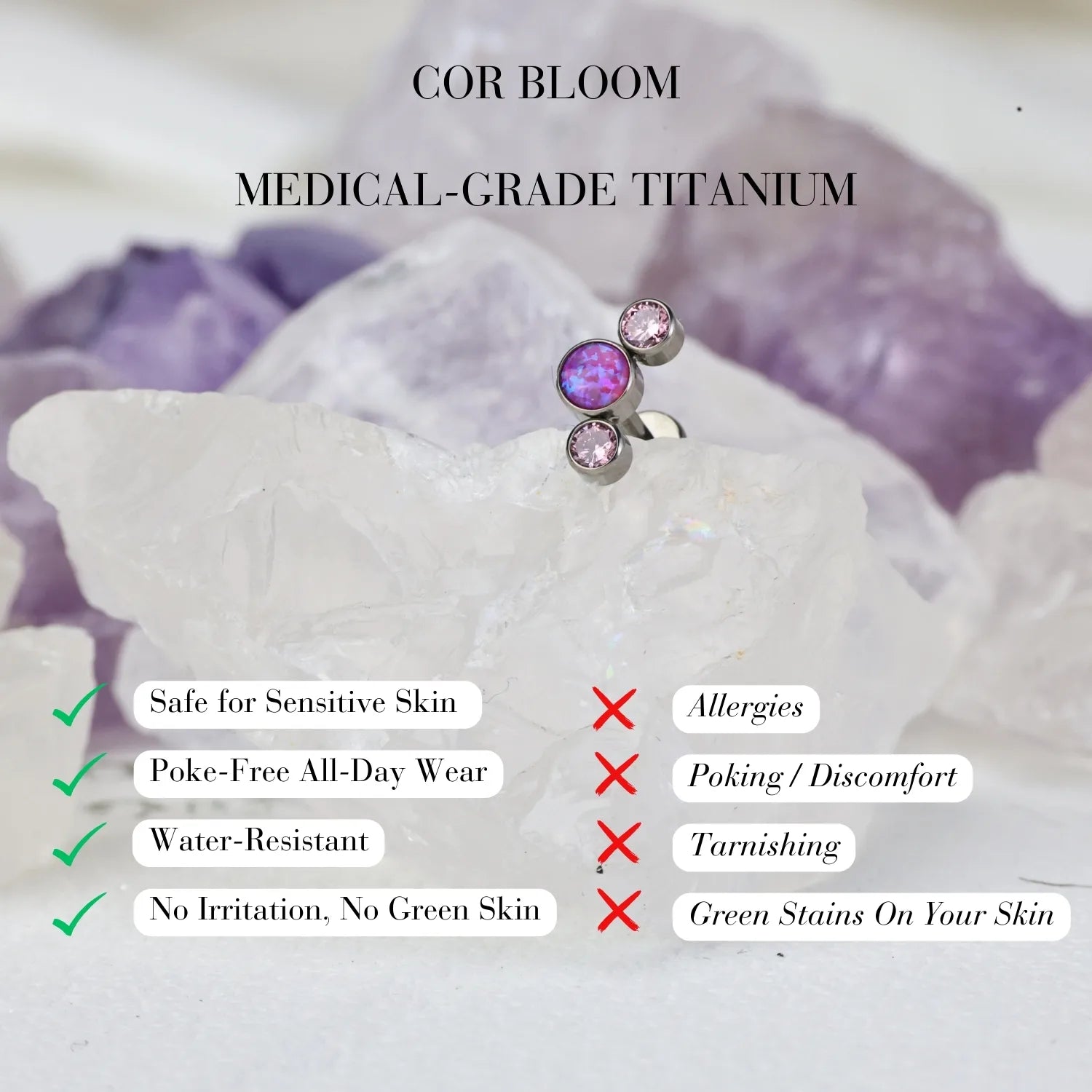 ❀ ASTM F136 Implant-Grade Titanium — safe, durable, tarnish-resistant, and ideal for both initial and healed piercings