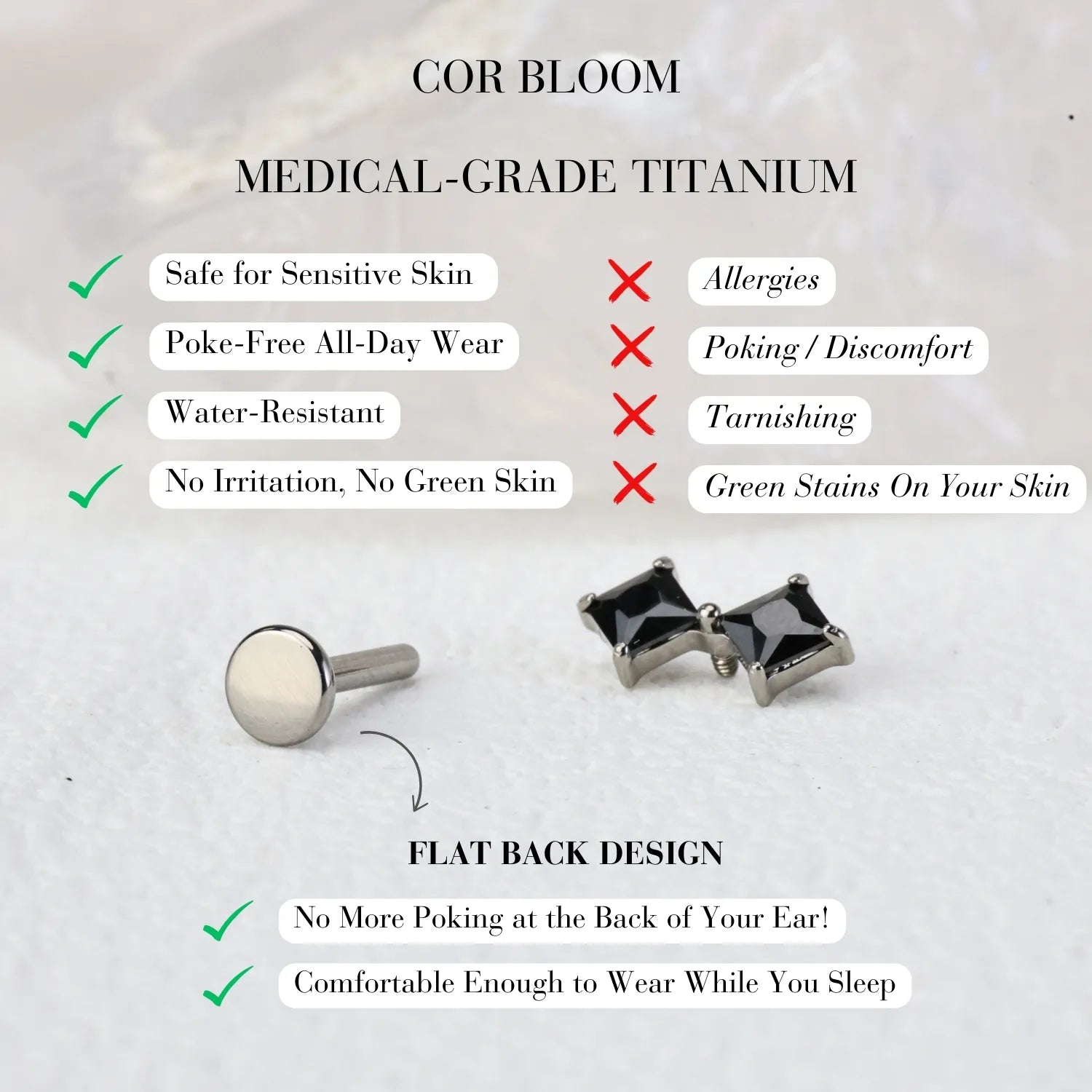 Titanium Vada Duo Square Flat Back Stud - Black Spinel