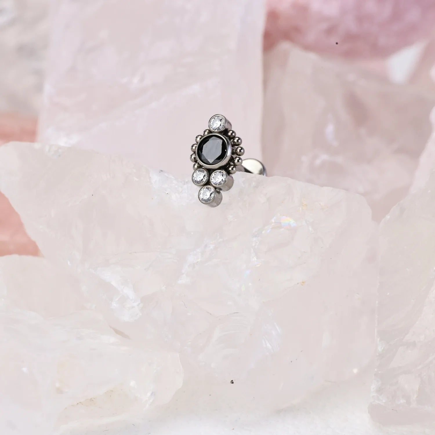 Titanium Edith Mini Duo Flat Back Stud - Dark Iridescent Gem