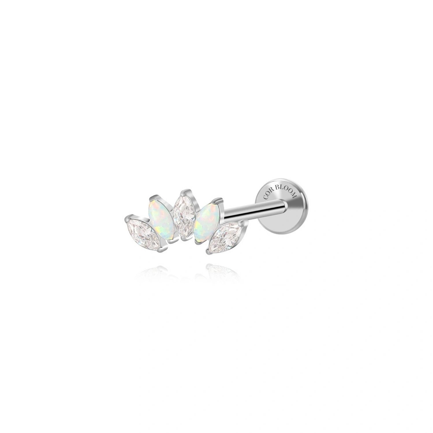 Titanium White Opal&Crystal 5-Petal Marquise Stud