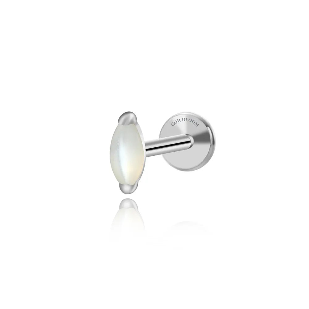 Indulge in pure elegance with our Titanium White Shell Marquise Piercing Stud. The shimmering white shell adds a touch of sophisticated beauty and radiates a luxurious aura. Upgrade your piercing game with this beautiful and timeless piece.