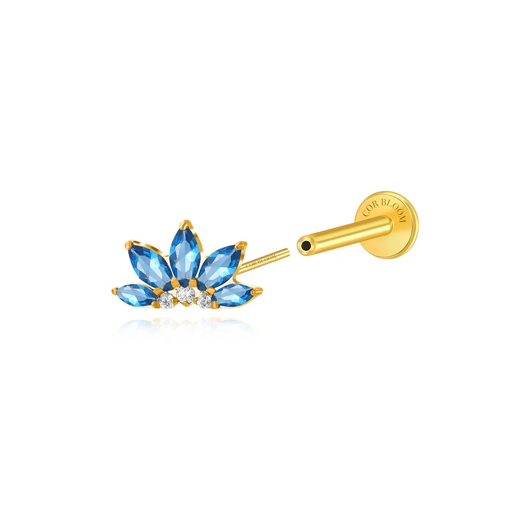 Titanium Xanthe London Blue Topaz Lotus Flat Back Stud