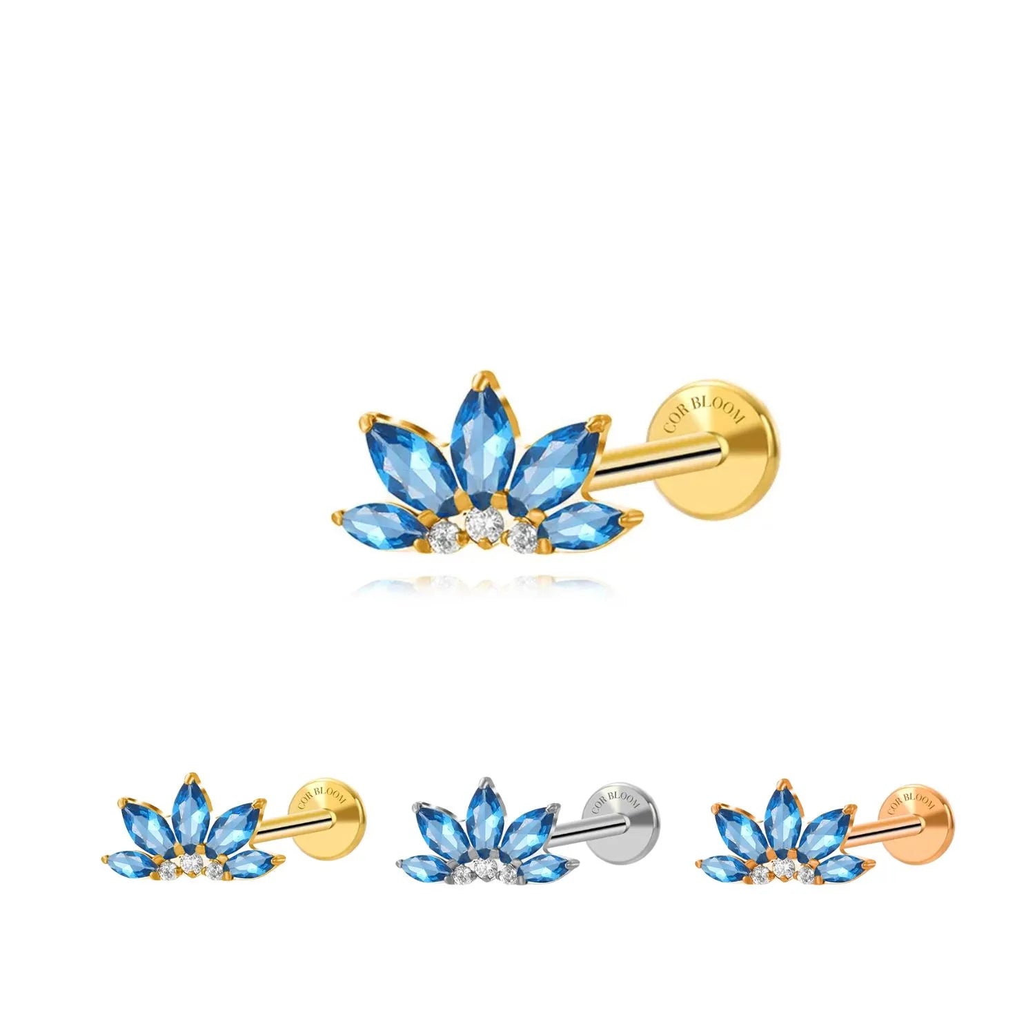 Blue Sapphire Jasmine Flower Flat Back Stud