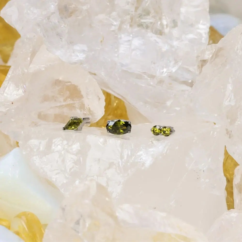 Titanium Xyla Rhombus Gemstone Stud - Peridot