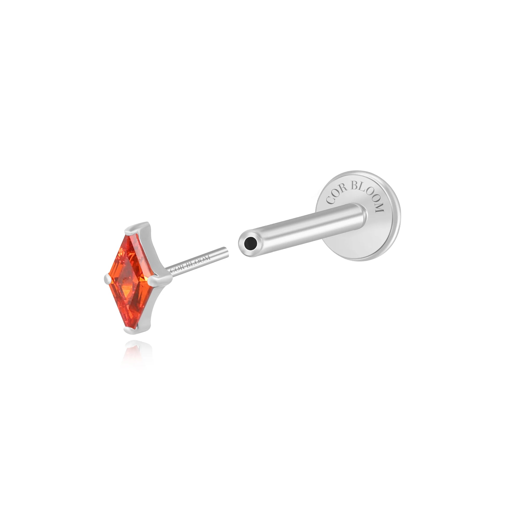 Titanium Xyla Rhombus Gemstone Stud - Red Garnet