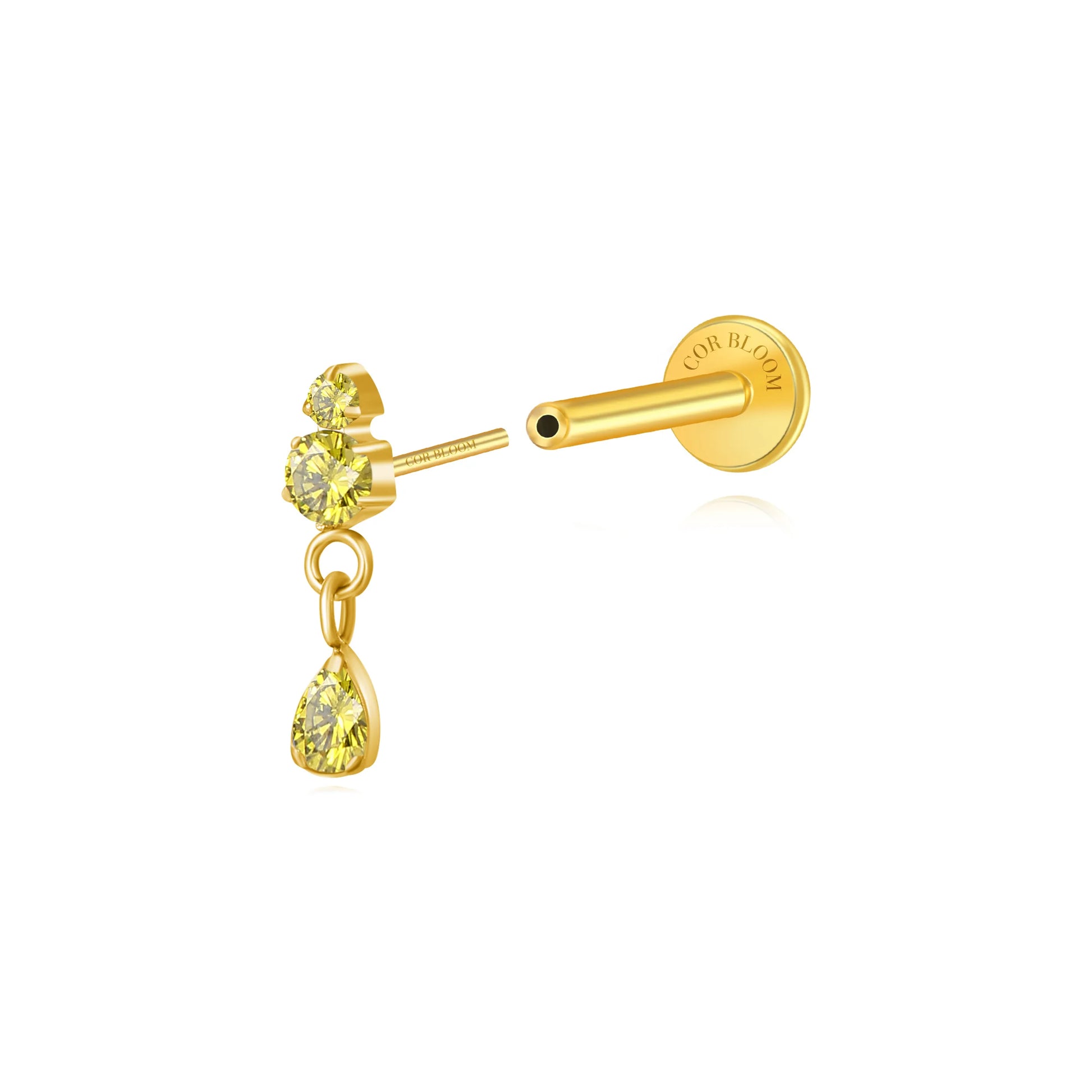 Elevate your style with our exquisite Titanium Yuri Waterdrop Push Pin Stud. The dangling design moves effortlessly with your body, while the sparkling gemstone adds a touch of sophistication. Perfect for a helix piercing, its dainty size and easy push pin design make it a must-have for any fashionista.