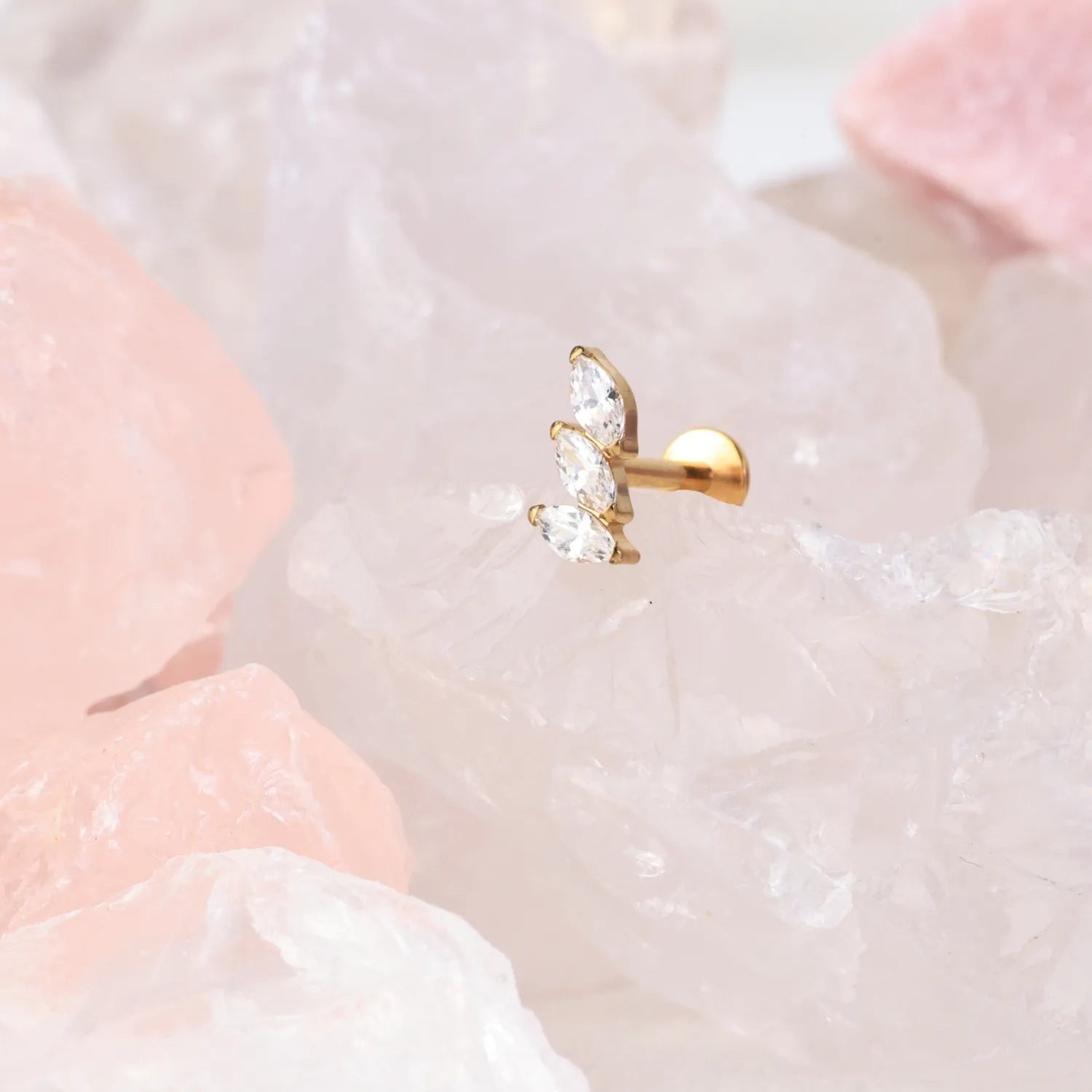 Add a soft touch of shine to your ear stack with our Yusra Trio Graduate Marquise Stud — a dainty and elegant design crafted to enhance your unique style.