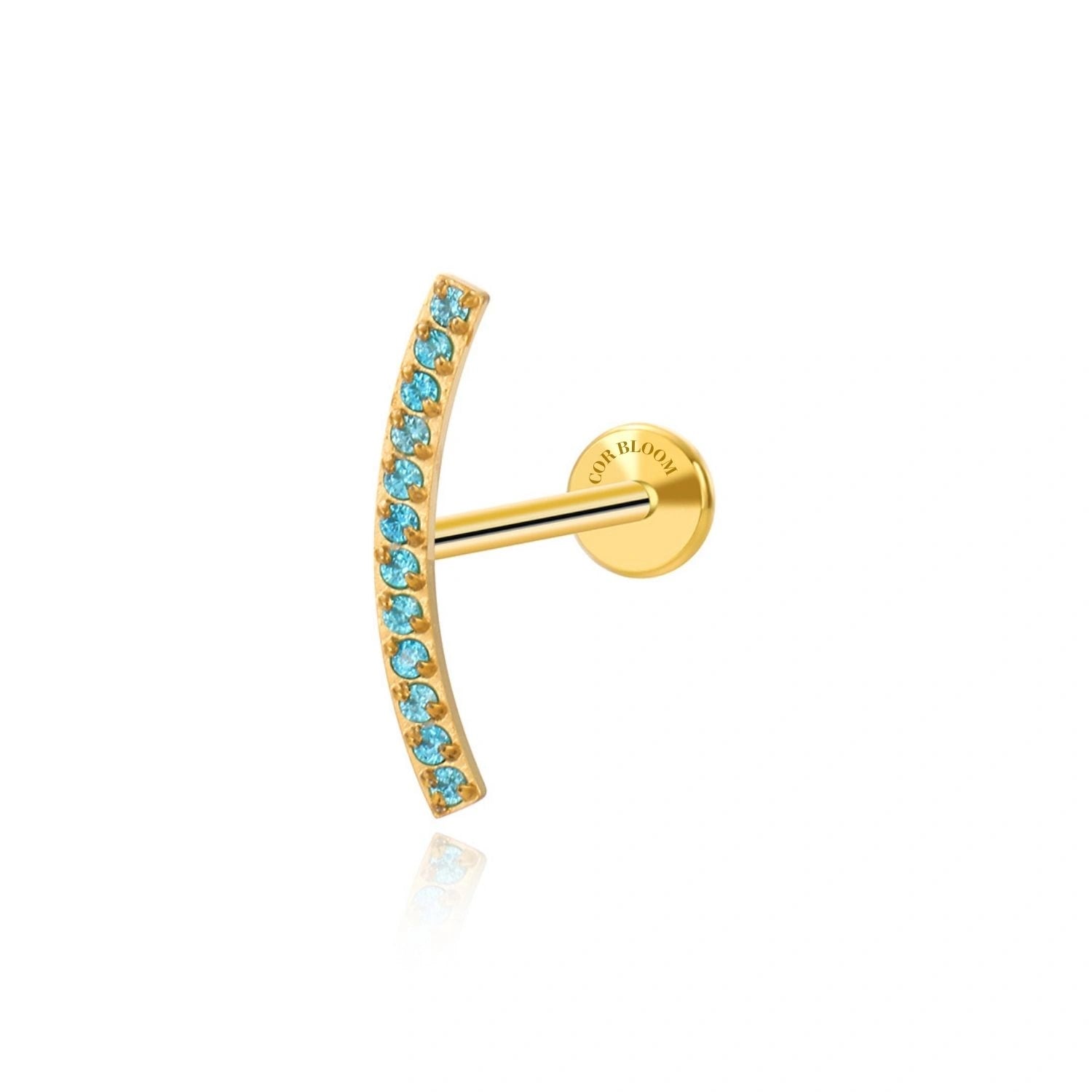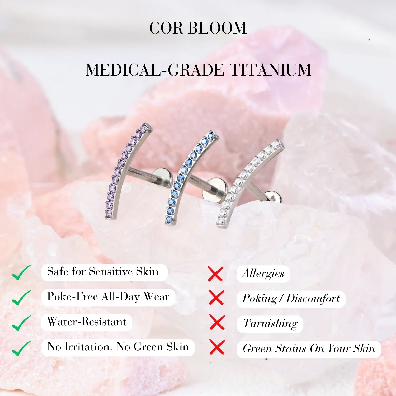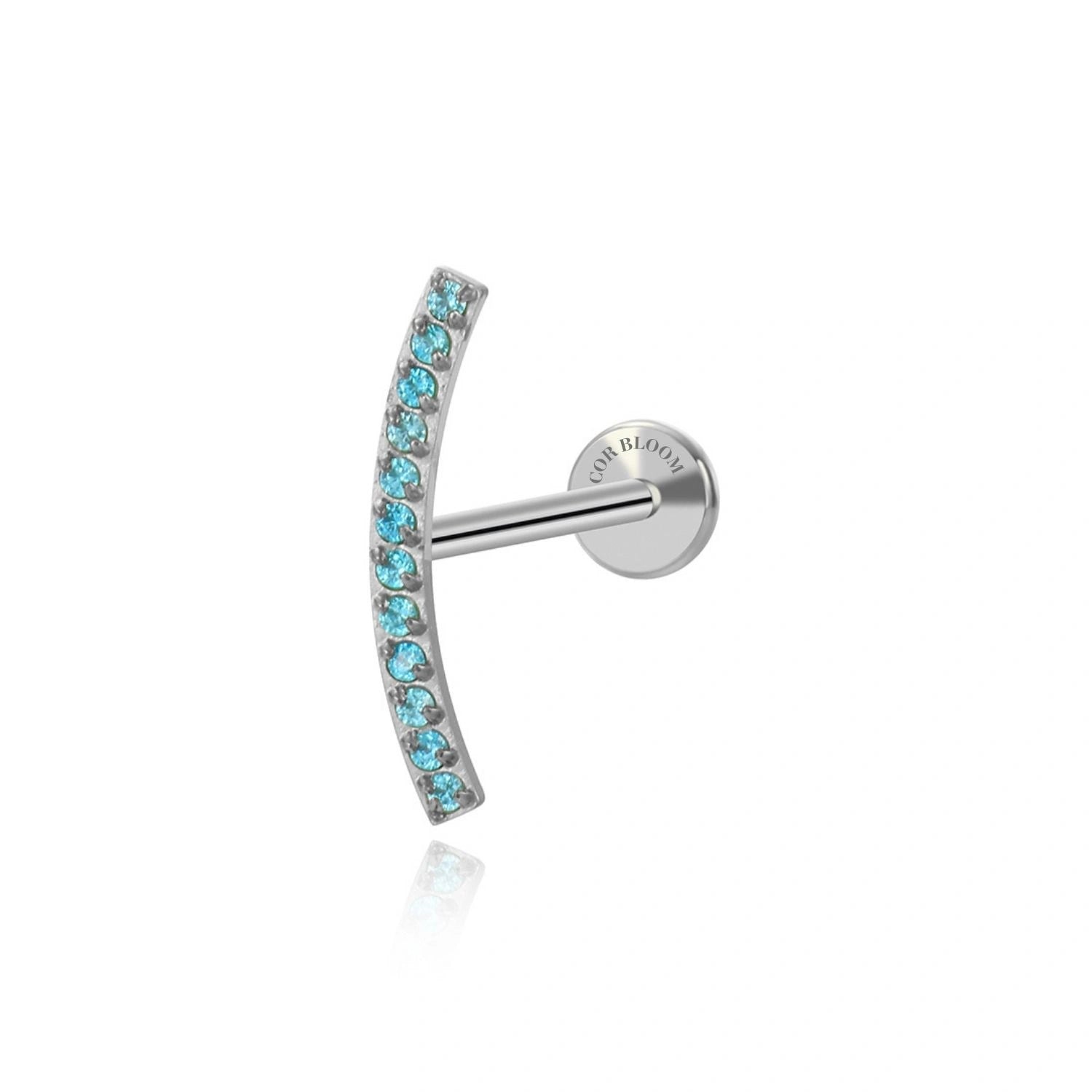 Elevate your helix piercing with the Titanium Zoey Curved Line Flat Back Stud. Crafted from durable titanium, this elegant piece features a subtle curved line adorned with radiant gemstones, combining strength with refined beauty. Its flat back design ensures comfortable wear, making it an exquisite choice for those seeking both style and sophistication.