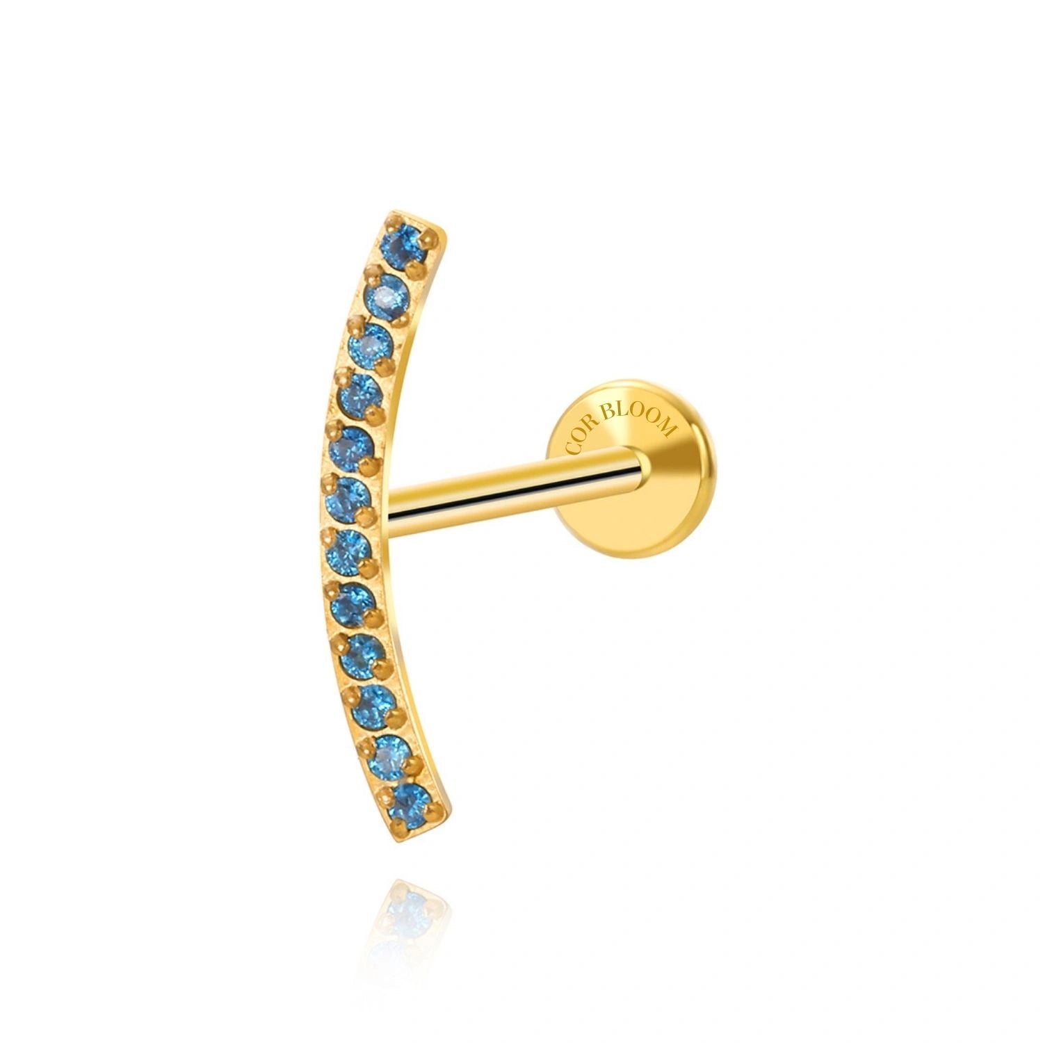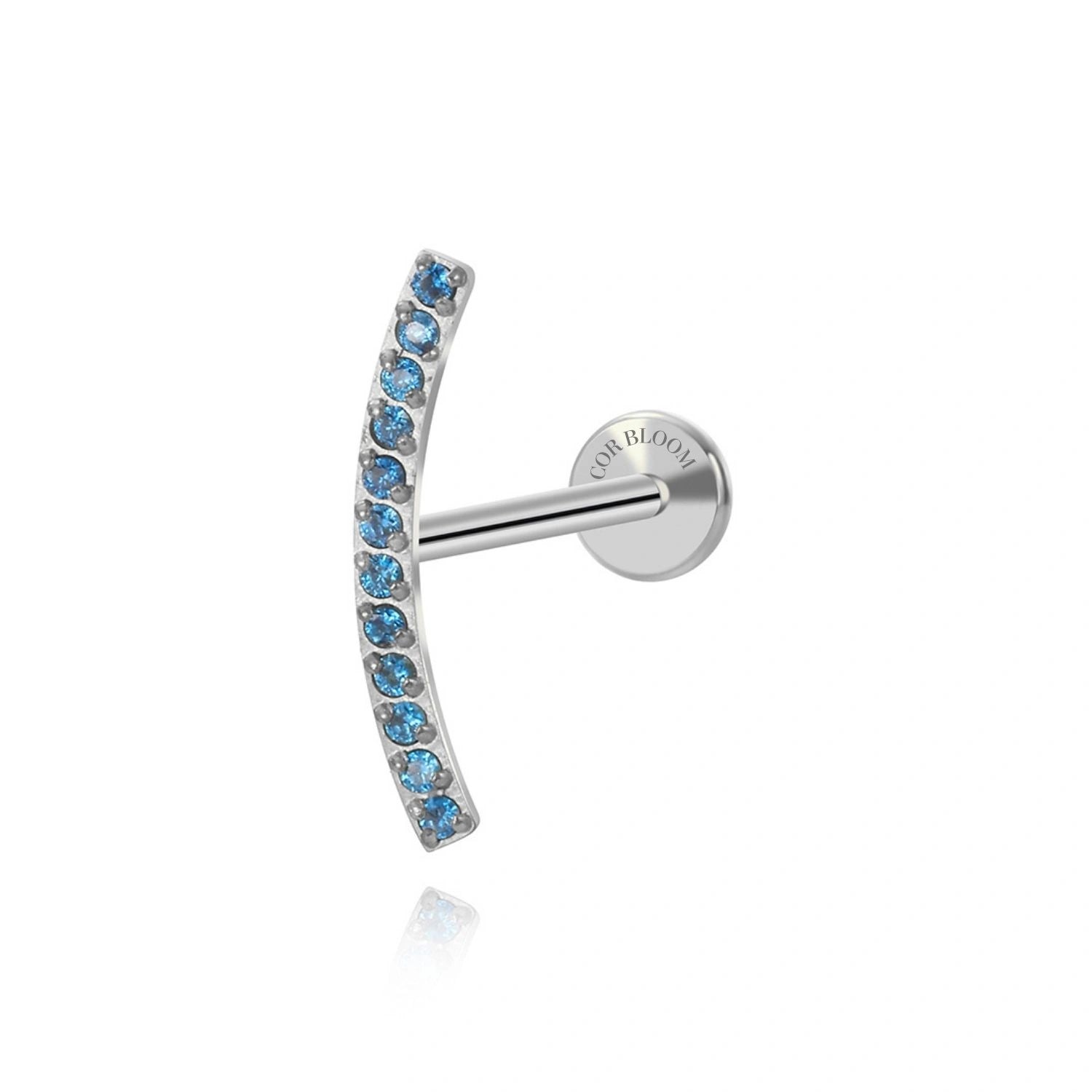 Elevate your helix piercing with the Titanium Zoey Curved Line Flat Back Stud. Crafted from durable titanium, this elegant piece features a subtle curved line adorned with a radiant blue sapphire stones, combining strength with refined beauty. Its flat back design ensures comfortable wear, making it an exquisite choice for those seeking both style and sophistication.