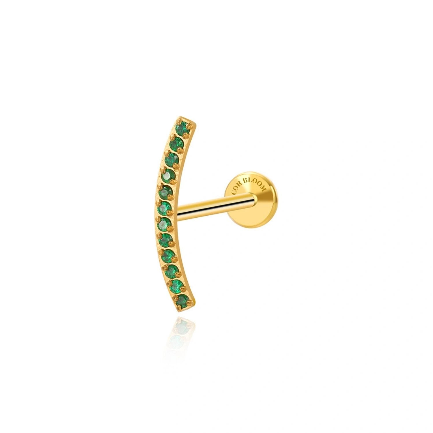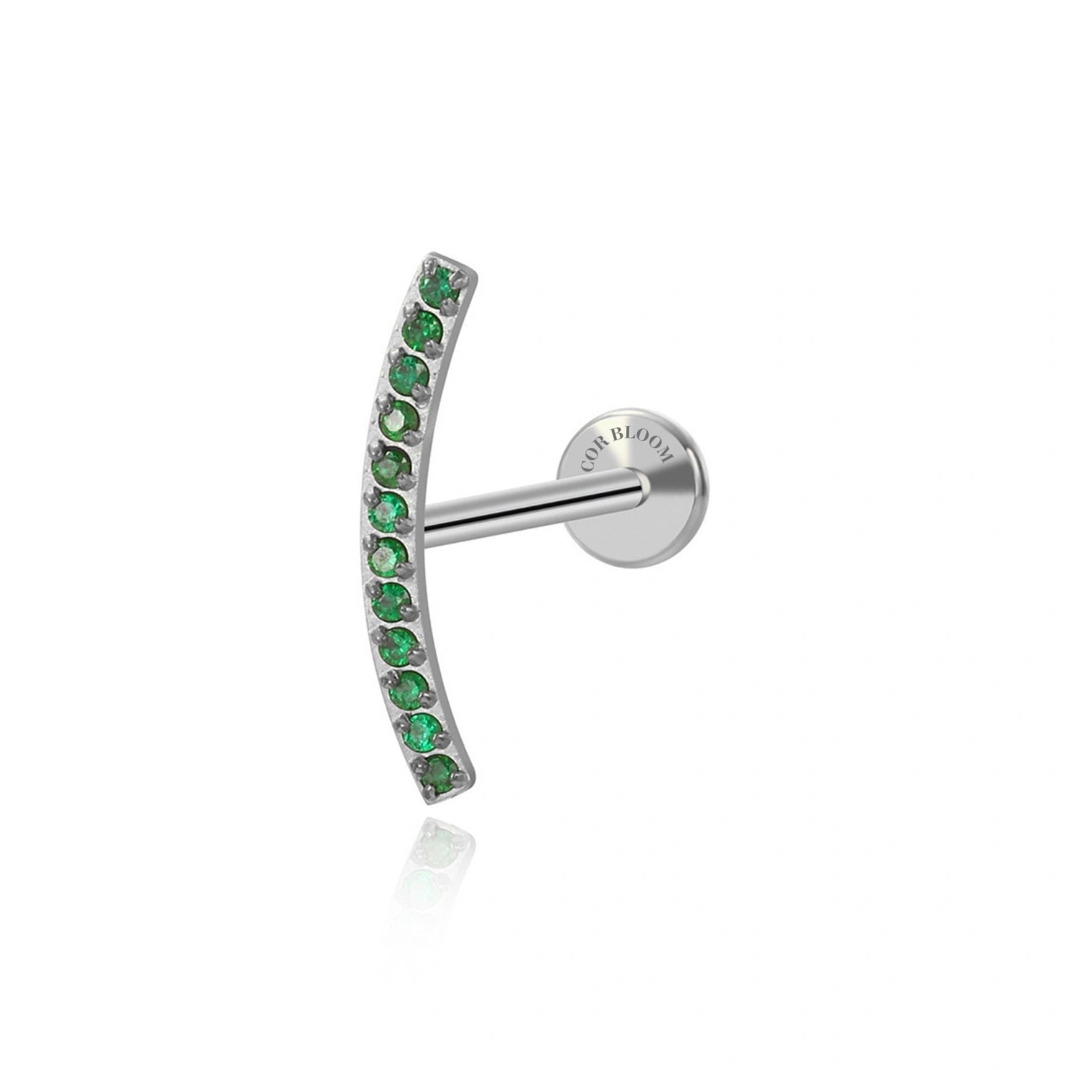 Titanium Zoey Green Emerald Curved Line Flat Back Stud