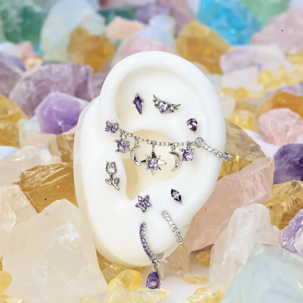 Titanium Yuri Waterdrop Push Pin Stud - Purple Amethyst